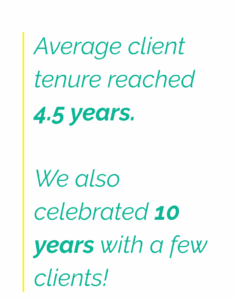 We are so proud that our average client tenure reached 4.5 years, a reflection of long-term trust and shared responsibility. And our longest client has now been with Elevate over a decade! In a volatile funding environment, many nonprofit leaders chose to stay with a partner who already understood their programs, their risks, and their institutional history.