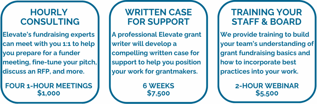 Elevate’s Grants Accelerator Project Suite provides strategic advice and research to launch your grants program.
